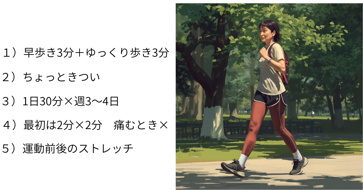 インターバル速歩は良い方法ですが、膝や股関節に不安がある方は、自己流で頑張るより先に——
